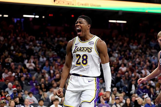 本场比赛中,湖人的先发锋线大将八村塁(Rui Hachimura)的表现令人大跌眼镜。八村塁全场出场36分25秒,投篮12中6,三分线外5中2,罚球4中2,得到了16分6篮板1助攻1盖帽的数据,还有3次失误和2次犯规,正负值为-8。八村塁在进攻端的表现其实还算不错,他展现出了比较全面的得分能力,他的无球移动能力依然不错,他在外线投篮方面的表现也是值得肯定的。只是问题就在于,八村塁在防守端的表现实在是太糟糕了,他在防守端各种漏人各种被过,他不仅防守能力不足,而且在防守专注度方面存在着不小的问题。总体来看,在大量轮换球员缺阵的情况下,作为球队重要轮换球员的八村塁并没有发挥出自己应该的作用,他在防守端更是严重拖了球队的后腿,这也在一定程度上导致了球队的这场惨败。