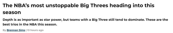 火箭队排第二!在距离新赛季训练营不足两周之际,美媒《fansided》提前预热公布出现役TOP5三巨头名单,其中湖人与勇士意外落选,快船队排名第三。