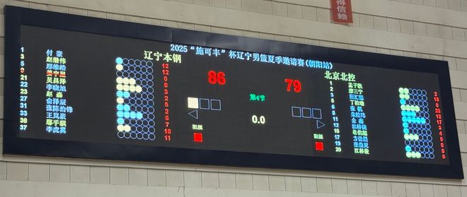 雷速体育9月28日讯 辽宁男篮迎来与北控的第三场热身赛。四节激战,辽宁86-79战胜北控。首节比赛,辽宁19-22落后3分。第二节辽宁很快反超,半场领先北控3分。第三节辽宁扩大优势,