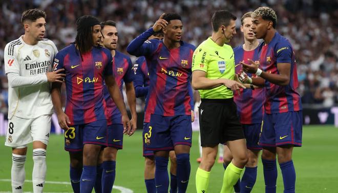 西班牙国家都被,尽管球队输球,但随队远征的巴萨球迷展现了极高的组织性和忠诚度。皇马分配给巴萨的客队票早早售罄,甚至需要抽签决定归属。赛后,他们按惯例在球场多停留了一段时间,但全程情绪高昂,高唱歌曲,反复提醒皇马球迷:“联赛冠军是我们!还有国王杯!还有超级杯!”