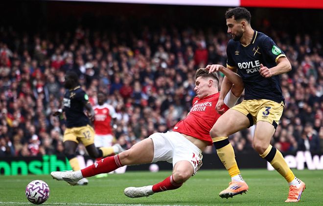 雷速体育10月5日讯 英超第7轮,阿森纳主场2比0击败西汉姆联。阿森纳前锋哲凯赖什首发踢满全场。