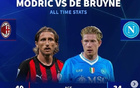 直播吧9月28日讯 本轮意甲AC米兰将迎战那不勒斯,德转也对比两队中场莫德里奇与德布劳内生涯数据,具体如下:莫德里奇vs德布劳内年龄:40--34比赛场次:1088--769进球:125--191助攻:172