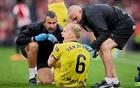 还好无大碍!萨卡被对方球员蹬踏,痛苦倒地